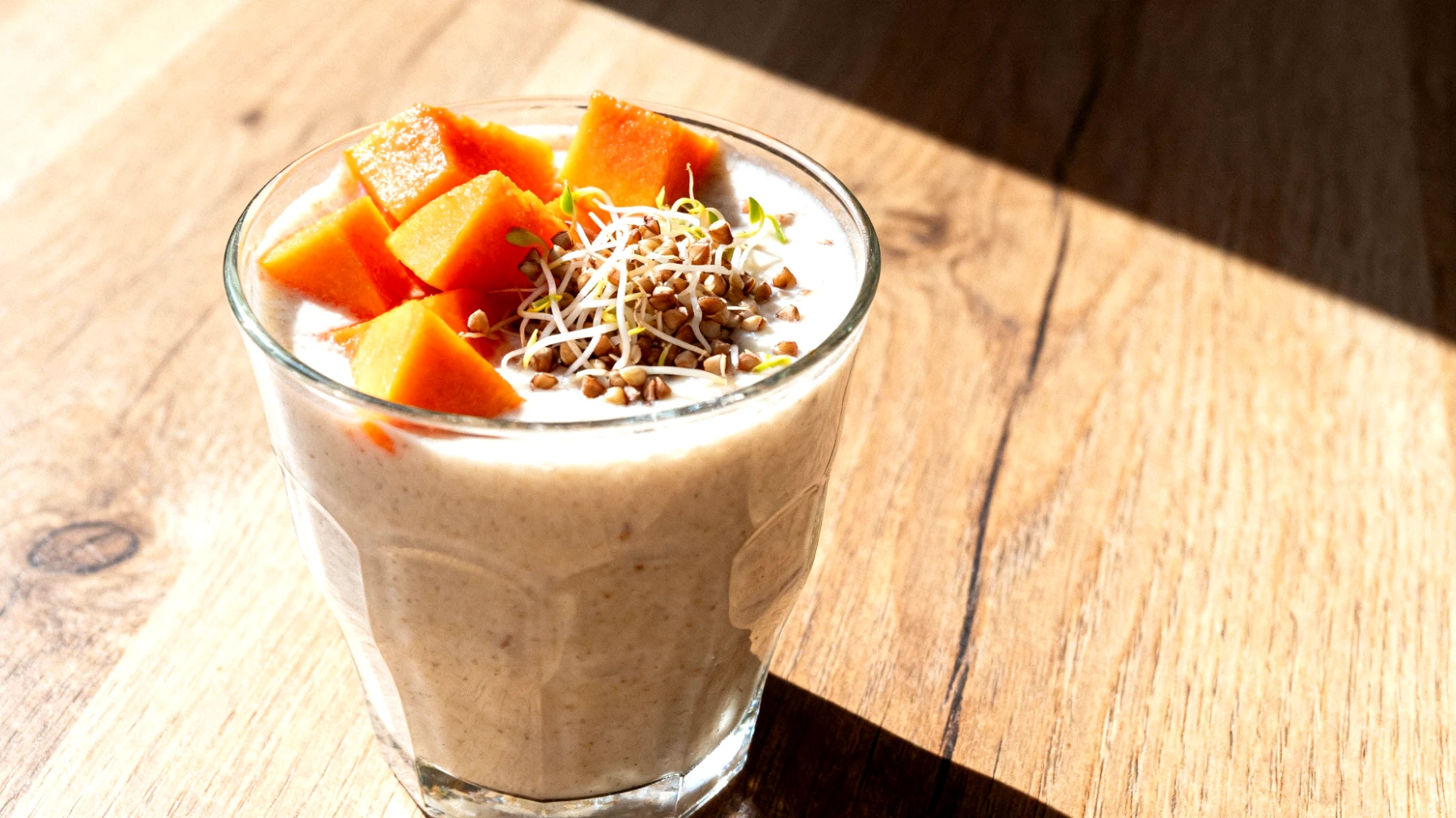 Die Vorbereitung beginnt bereits am Vorabend: Der Buchweizen sollte mindestens acht, besser zwölf Stunden in Wasser eingeweicht werden. Ernährungsberater empfehlen, das Einweichwasser mehrmals zu wechseln, um Bitterstoffe zu entfernen. Nach dem Einweichen können erste Keimansätze sichtbar werden – ein Zeichen dafür, dass der Keimprozess die Nährstoffe aktiviert hat. Am Trainingstag selbst braucht es dann nur noch wenige Minuten: gekeimten Buchweizen, Kefir, frische Papaya und eventuell etwas Honig oder eine Prise Zimt in den Mixer geben und cremig pürieren.