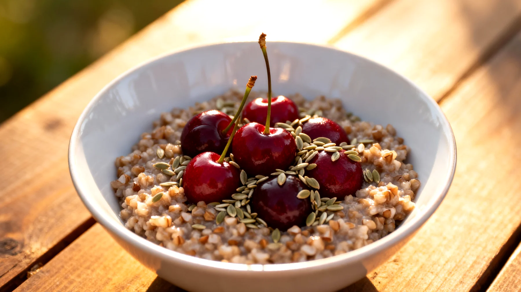 Der mild-nussige Geschmack von Hanfsamen harmoniert hervorragend mit der Süße der Kirschen und der erdigen Note des Buchweizens. Ein Esslöffel reicht bereits aus, um die Mahlzeit mit hochwertigen Proteinen, gesunden Fetten und wertvollen Ballaststoffen anzureichern, ohne sie zu schwer zu machen. Diese Fette verlangsamen außerdem die Aufnahme der Kohlenhydrate aus dem Buchweizen, was für einen gleichmäßigen Blutzuckerspiegel über die Nacht sorgt.