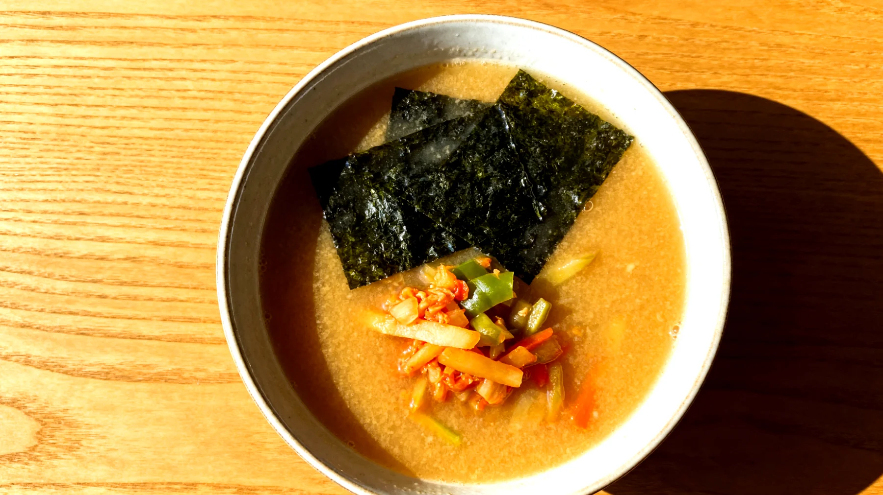 Auch fermentiertes Gemüse wie Tsukemono – eingelegte Rettiche oder fermentierter Chinakohl – lässt sich hervorragend integrieren. Diese Zutaten ergänzen die fermentierte Miso-Paste geschmacklich und fügen weitere Textur hinzu. Selbst hierzulande vertraute Varianten wie Sauerkraut können eine interessante Bereicherung sein.